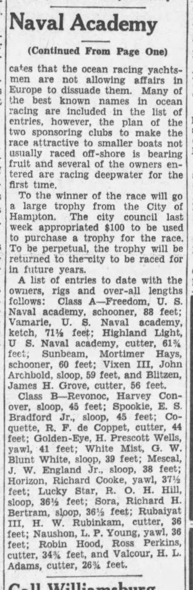 H Prescott Wells Golden Eye yawl - Daily Press (Newport News VA) 18 May 1941.jpg