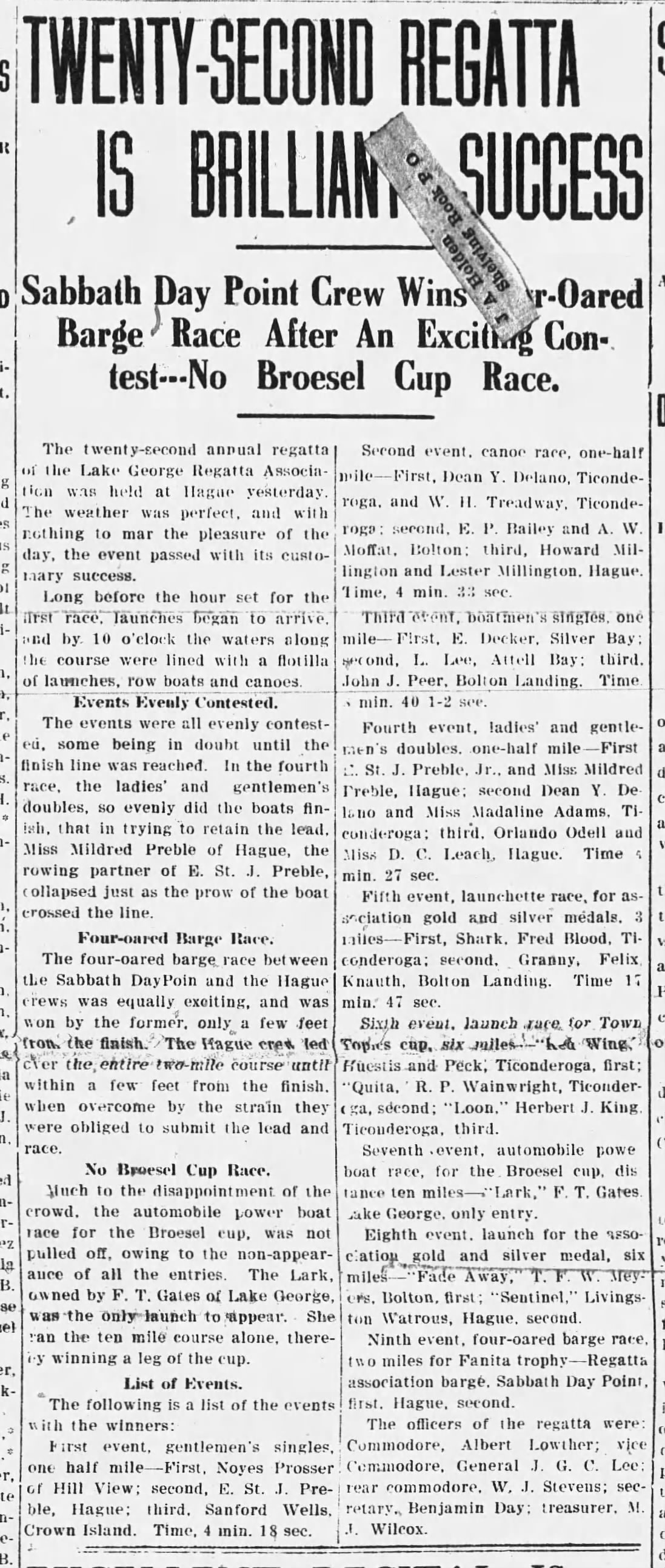 Lake George Regatta - Stanford race - Post Star (Glens Falls NY) 20 Aug 1909.jpg