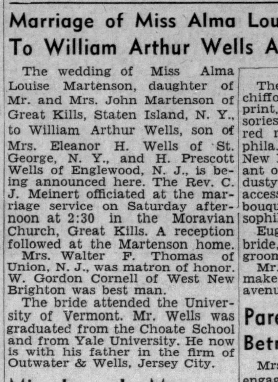 Marriage William Arthur Wells Burlington Free Press 4 Jul 1940.jpg