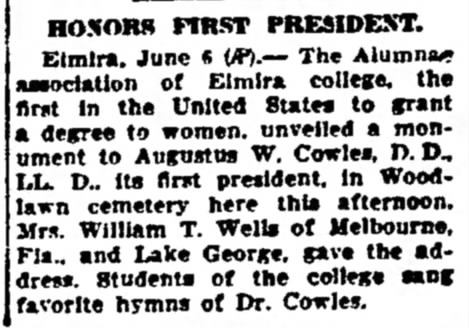 Nora Wells Elmira College address - Oneonta Star 7 Jun 1926.jpg