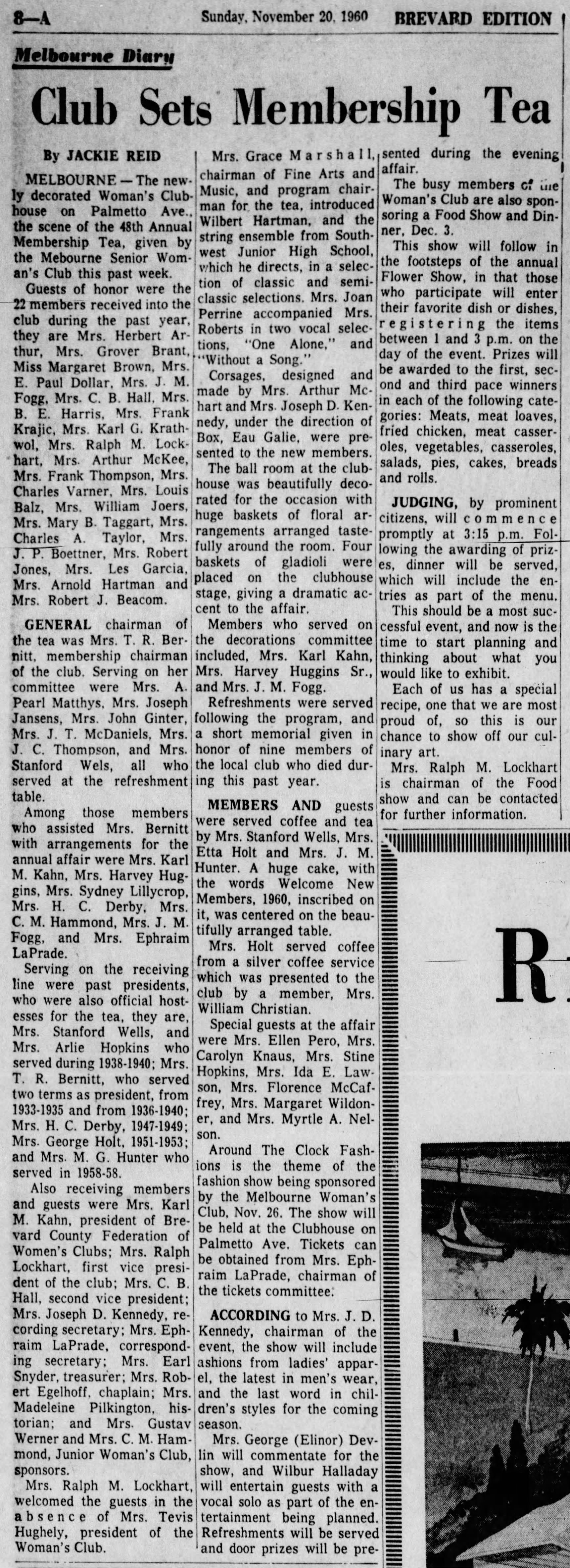 Pearl Wells Womens Club Tea - Orlando Sentinel 20 Nov 1960.jpg