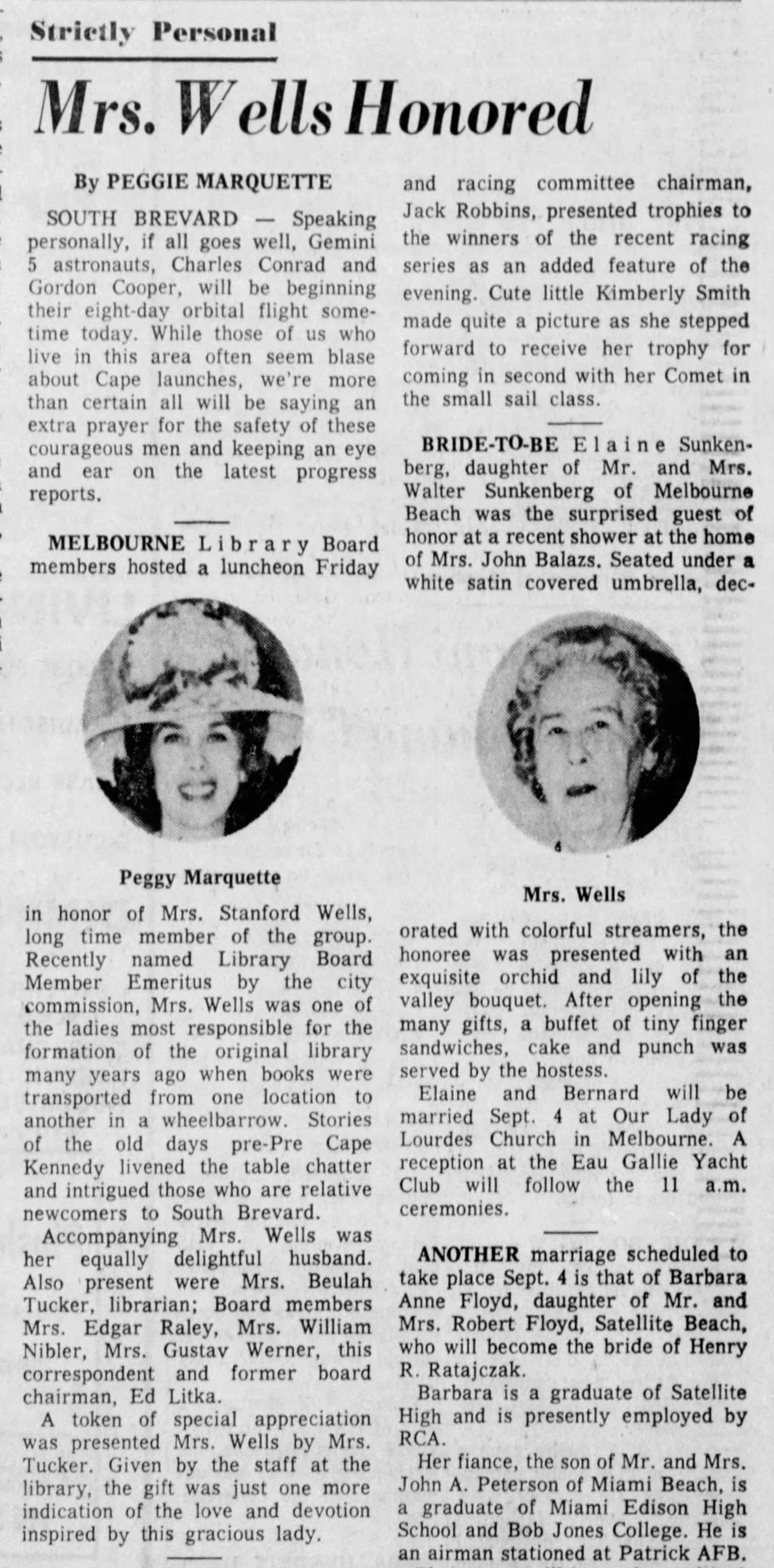 Pearl Wells honored - Orlando Sentinel 19 Aug 1965.jpg