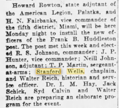 Stanford Wells chaplain - Miami News 3 Nov 1929.PNG