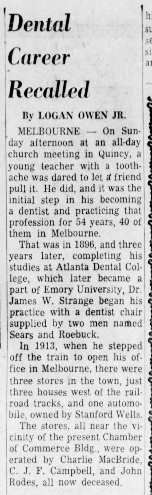 Stanford Wells only car owner in 1913 - Orlando Sentinel 25 Jan 1959.jpg