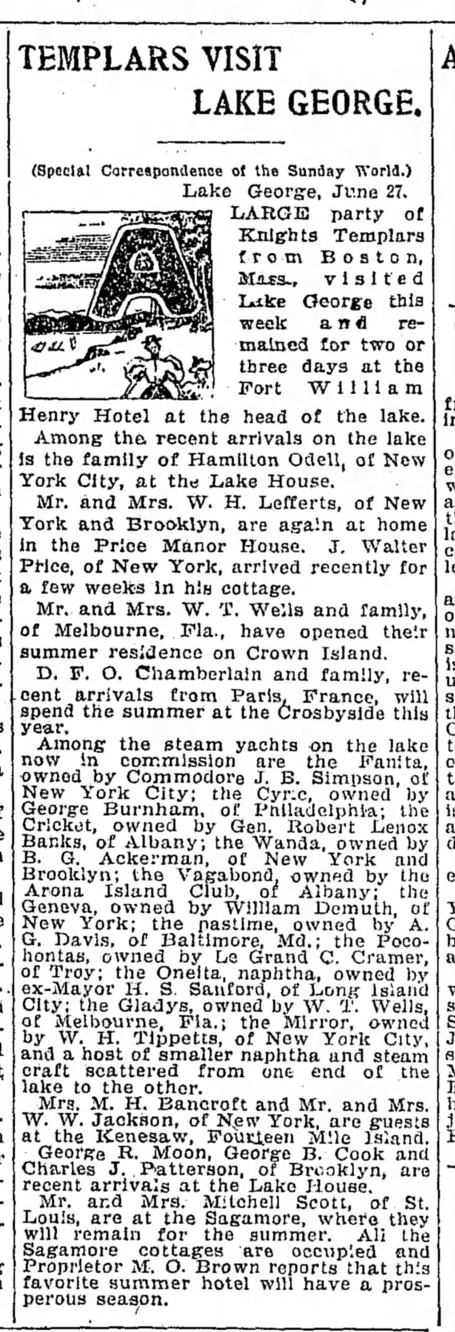 W T Wells at Crown Island and yacht - The World (New York) 28 Jun 1896.jpg