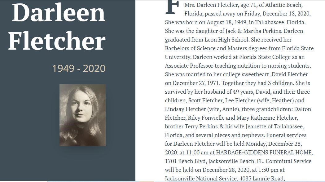 obit Darleen Fletcher Florida Times-Union 23 Dec 2020.PNG