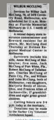 obit Wilbur Jack McClung - Florida Today 2 Mar 1980.PNG